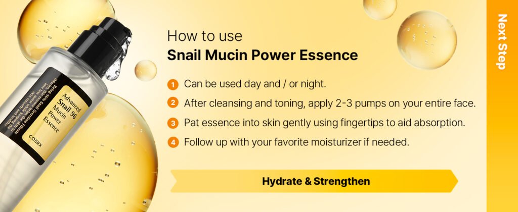 The Advanced Snail 96 Mucin Power Essence has a lightweight, fast-absorbing texture that glides onto the skin without feeling sticky or heavy. It melts in quickly, leaving behind a subtle, natural radiance that lasts all day.